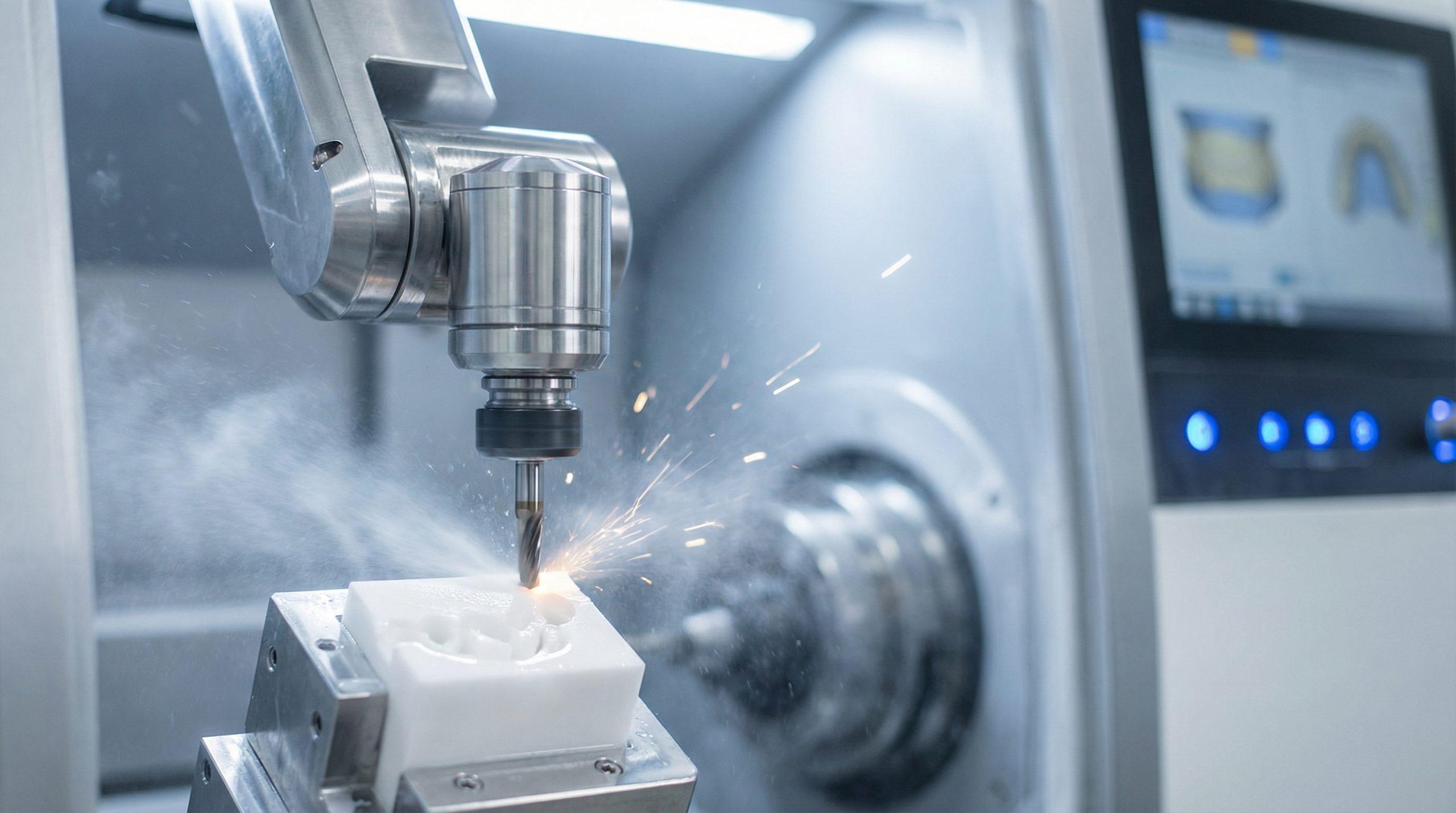 Digital scans of your mouth are sent to a milling machine that carves the restoration with sub-millimeter accuracy. This process eliminates the human error often associated with traditional stone molds and wax castings.